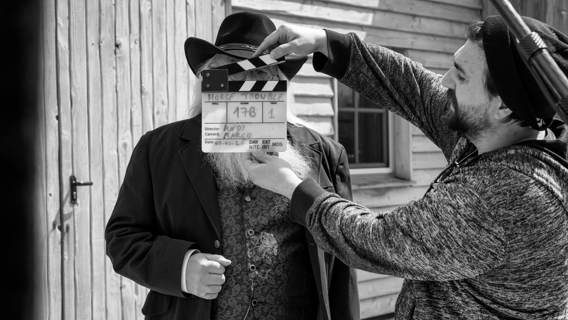 On May 8, 2025, I had the opportunity to serve as the set photographer for Andy Bausch's latest short film, "Horse Trouble," featuring a talented team and actors.